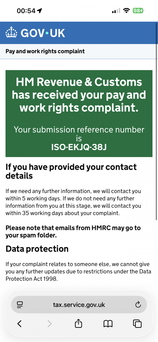 • HMRC(영국 국세청): 최저임금 위반 및 임금 체불로 정식 조사 착수 (사건 번호: NMW-230326-103585SON)