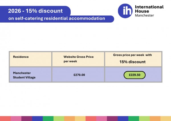 IH Manchester 코스, 기숙사 프로모션 (25% 할인)
