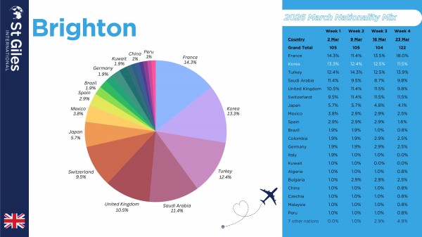 St Giles KOREA SPECIAL OFFER 3월 국적 비율 (20% 학비 할인)