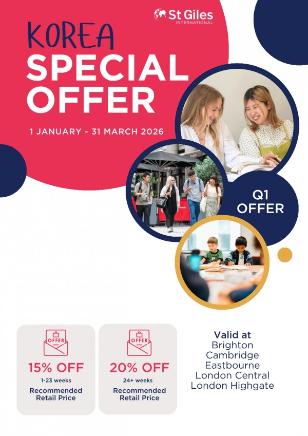 영국에서 가장 인기 있는 그룹학교이고 상위권으로 평가받는 St Giles에서 최대 20% 학비 할인의 장학혜택을 제공 중이라서 저렴하게 영어 공부가 가능하네요.