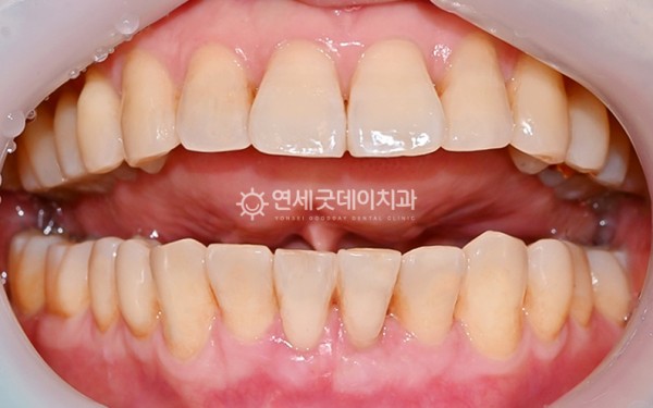 ●영국사랑 공식 협력병원, 연세굿데이치과● 핀홀 잇몸이식을 동반한 아랫니부분교정(치주교정) 치료전후 > 서비스광고