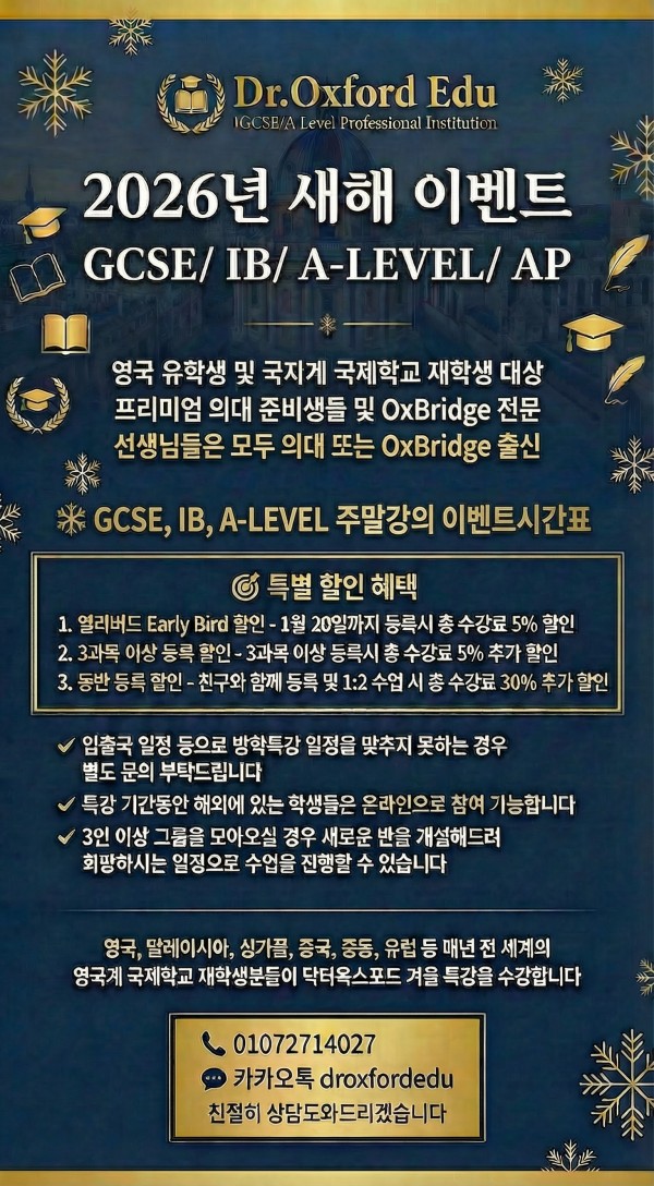 [OxBridge & 의대 출신 강사진 ONLY] 명문보딩사립11+, 옥스브리지 & 의대법대 준비반 OPEN