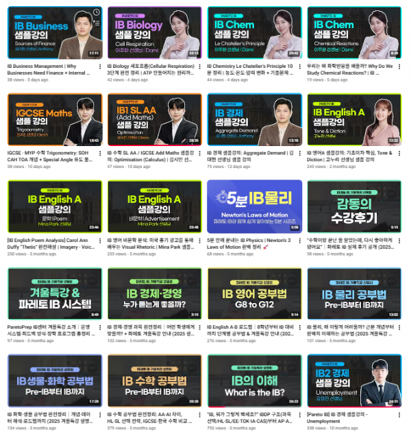 파레토IB 유튜브에는 샘플강의를 포함하여 다양한 정보영상이 올라와 있습니다.