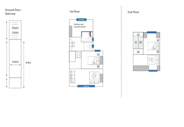 방 4개, 부엌, Full bathroom incl toilet, Separate toilet with basin 구조로 되어있고 복층 구조라 복잡하지 않습니다.