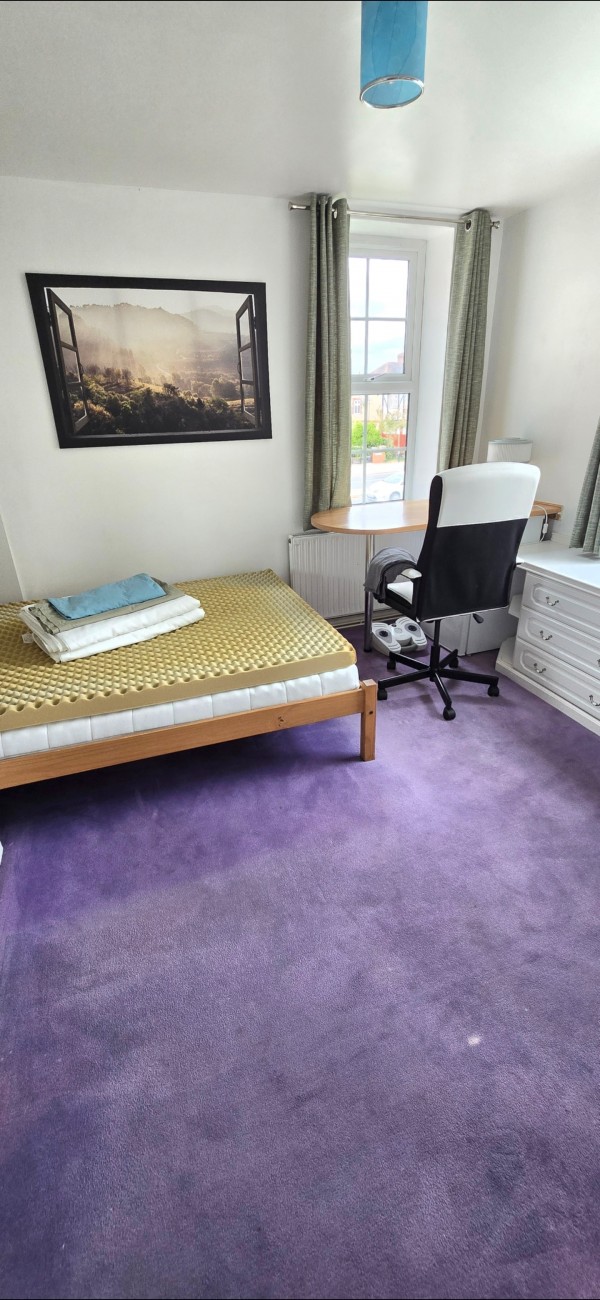 교통이 편리하고 대형 공원이 가까워 공기가 맑고 안전한 지역인 Morden 에서, 관리 상태가 매우 좋은 3 베드룸 플랫의 넓고 쾌적한 킹사이즈 더블룸을 렌트합니다.