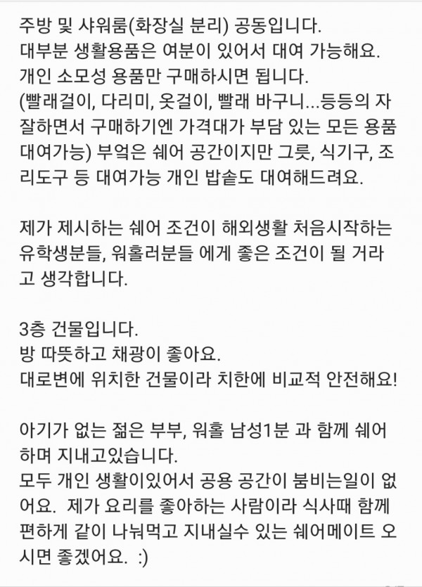 *남성분만 받습니다. 커플, (애완동물)안됩니다.