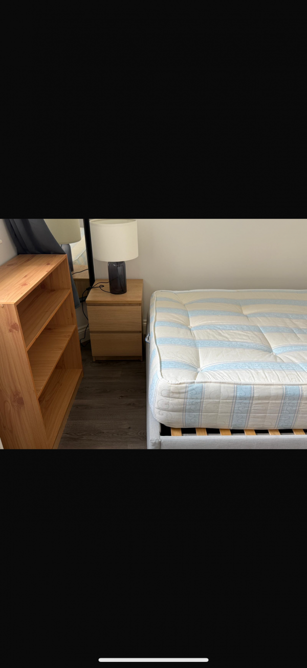 살기 정말 좋은 동네고 방에는 더블사이즈침대, 옷장, 4단 서랍장, 4단 책장, 2단 협탁, 이케아 책상 , 의자, 전신거울, 조명, 암막커튼, 린넨커튼 있고 바닥에 요가매트를 깔아도 남을 정도로 넓고 쾌적한 방입니다 화장실은 방 옆에 있고 혼자 쓰기에 깔끔하고 좋아요