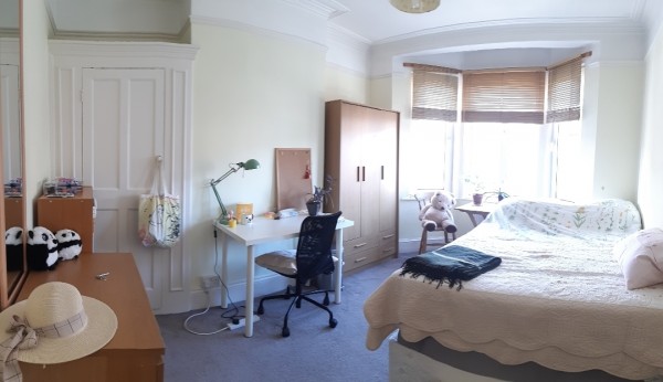 골더스 그린역 세인즈 버리 건너편 골목으로 걸어서 8분 정도(한 전거장) 떨어진 하우스입니다. 주변에 차인즈힐 공원도 있어 산책 하시기 편하고 한국 수퍼와 큰 마트 등이 있어 장보기도 편합니다.