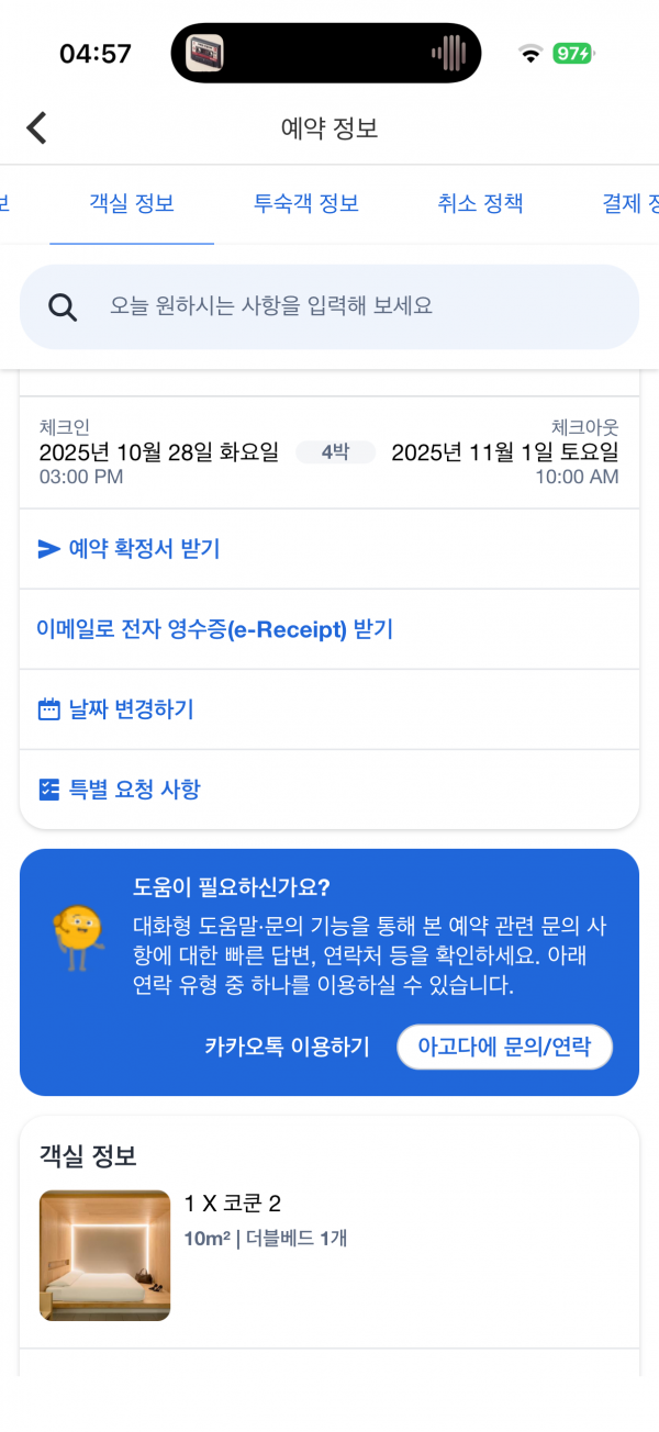 가격: 약92만원에 코쿤룸 더블배드 예약했구