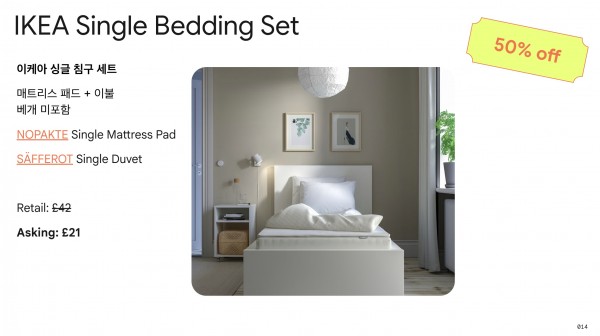 이케아 침구 세트 (전품목 구매시 £38, 60% 할인)