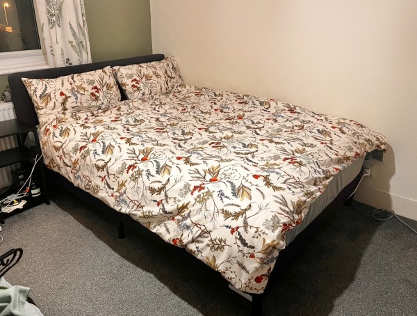 매트리스는 메모리폼이 불편해서 스프링 매트리스로 찾고 찾아 리뷰 좋은 Silent Night 제품으로 £280에 구매했습니다. 특별히 많이 예민하신 분이 아니라면 충분히 아주 편안하게 사용하실 수 있는 퀄리티입니다. 신제품으로는 전체 다 해서 £421 정도였습니다. 베드 프레임은 분해 가능하며, 원래 박스에 포장해드릴 수 있습니다. 매트리스는 비닐 커버 있습니다. 듀베 커버는 깨끗이 세탁 되어 있습니다.
