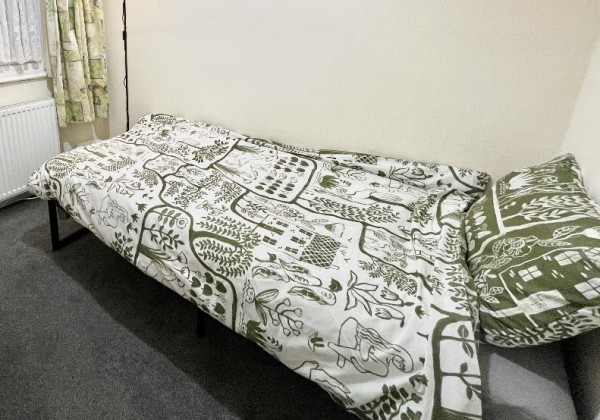 2. 싱글 베드 세트 £100 : 메탈 프레임( W 90 cm × L 190 cm × H 35 cm) + 메모리폼 매트리스 + 매트리스 방수 커버 + 매트리스 커버 + 베개 + 듀베 + 듀베 커버