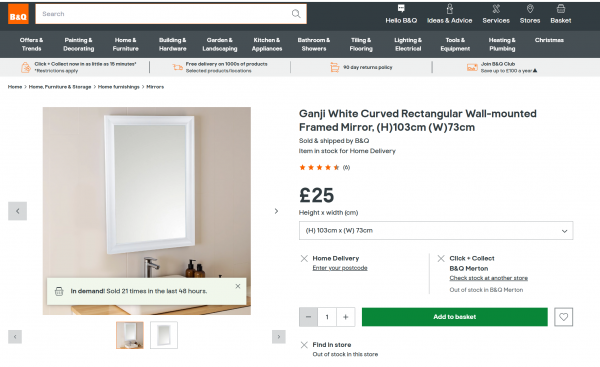 1. 거울(벽걸이사용가능, 전신거울로 사용함) (B&Q 103cm x 73cm) £10