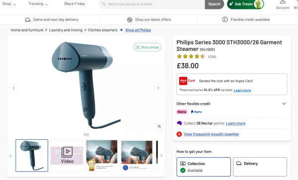 17. 필립스 스팀 다리미 (STH3000/26) + 장갑증정 £15
