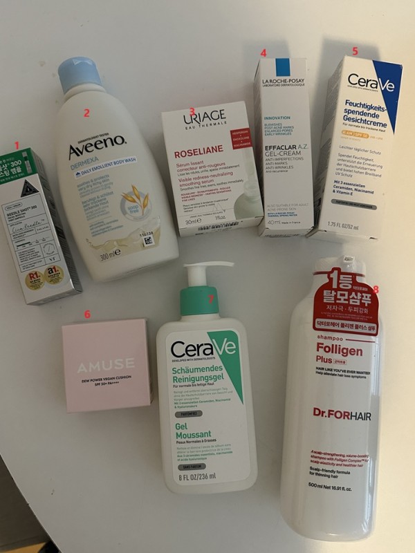 유럽 약국 제품들이랑 한국에서 가지고 온 제품들 모두 새 것이고 올해 구매한 것입니다. (제가 올해 5월 런던 왔습니다...ㅎㅎ)