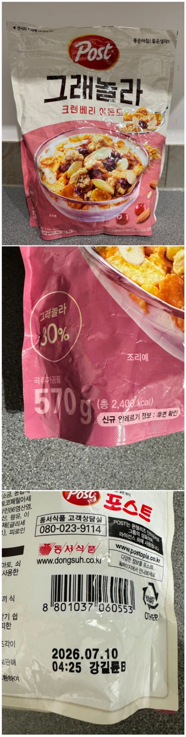 한국 시리얼인 포스트 그래놀라 크랜베리 아몬드 570g