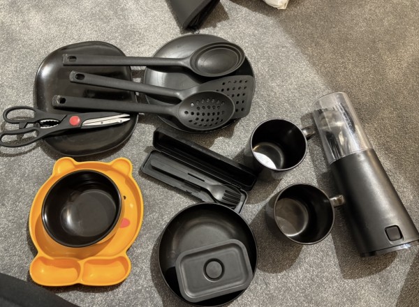 주방용품 세트 (밥그릇1, 접시4, 컵2, 수저포크2, 유텐실4, 무인양품 반찬통&숟가락&포크세트) -£20