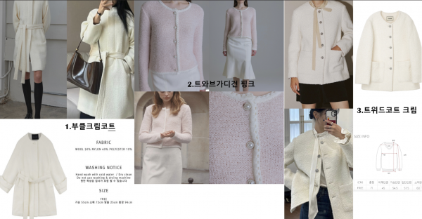 작년에구매한 제품이고 모델 착샷처럼 숏한 기장에 카라 없는 디자인