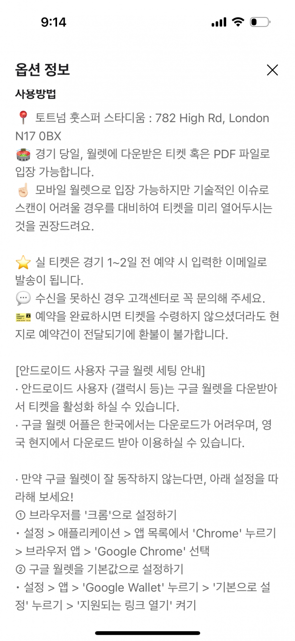 NOL(야놀자) 통해서 구매했고, 경기 1-2일 전에 제 이메일로 티켓이 오면 바로 보내드리겠습니다. 티켓 받으셔서 두번째 사진에 나와있는 것 처럼 월렛에 다운 받거나 PDF파일로 입장 가능합니다!