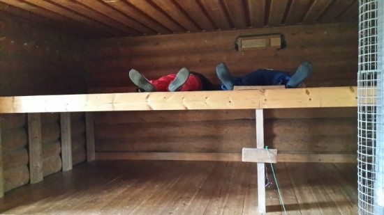 일반적인 통나무집 (hut) 내부. 이곳은 다소 새건물이네요..