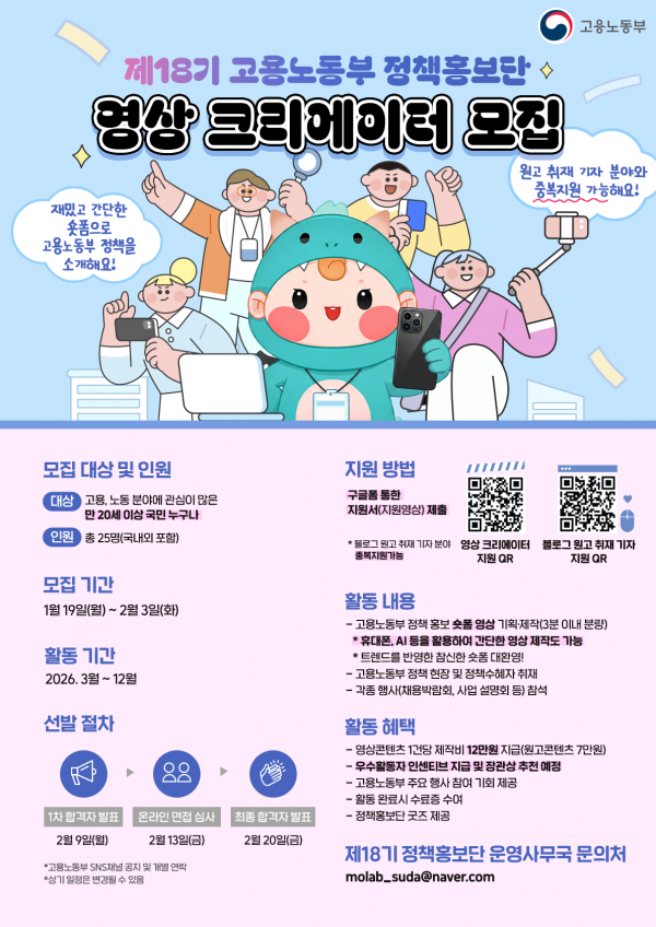 블로그 원고, 영상 제작 등 고용노동부 정책을 쉽게 소개하는 콘텐츠를 만드는 활동을 한다고 해요.