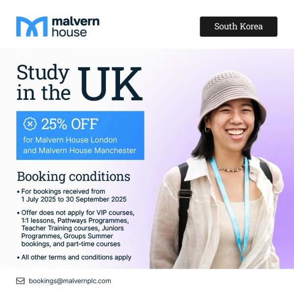 최신식 건물에서 가성비 우수한 Malvern House가 25% 학비 할인 혜택을 제공하고 있으니 어학연수를 고려하고 계시는 회원분들은 참고해 보세요.