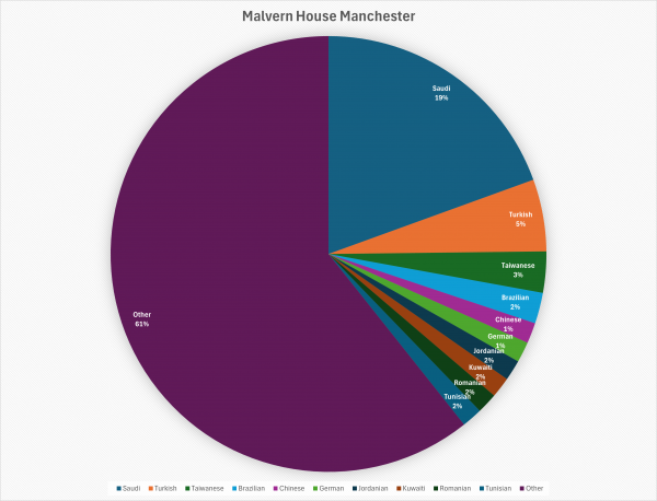 Malvern House Manchester 전체학생수, 한국학생수 그리고 주요한 국적 비율 (9월 18일 기준)