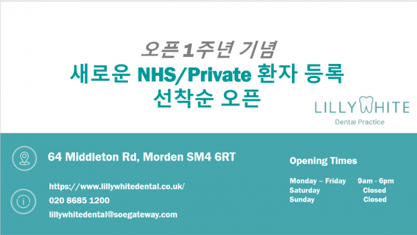 본 치과는 Northern 지하철노선의 Morden 역에서 도보 8분 거리에 위치해 있으며, NHS 및 개인 진료 환자 모두를 환영합니다. 등록을 원하시는 환자분들께서는 아래 명시된 번호나 웹사이트를 통하여 연락주시길 바랍니다. 선착순으로 환자등록을 운영하고 있으니 참고부탁드립니다. 상세 주소는 아래에 첨부하였습니다.