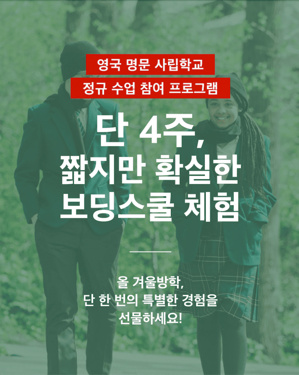 영국 명문 사립학교 정규 수업 참여 프로그램. 단 4주, 짧지만 확실한 보딩스쿨 체험입니다.