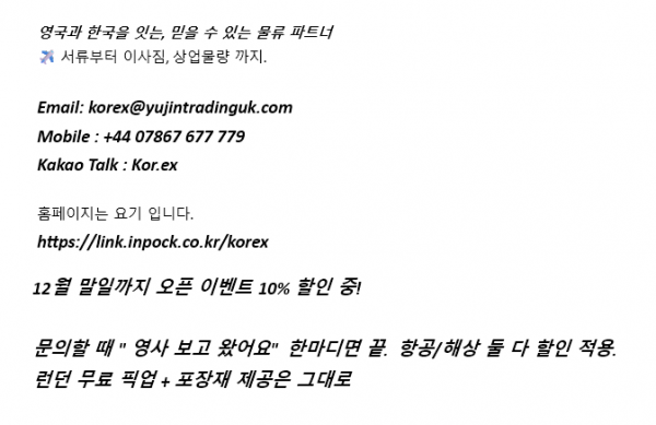 ✈️✈️ [[KORex]] ✈️✈️귀국 짐, 소포. 그냥 맡기세요! KORex 런던 무료 픽업 > 서비스광고