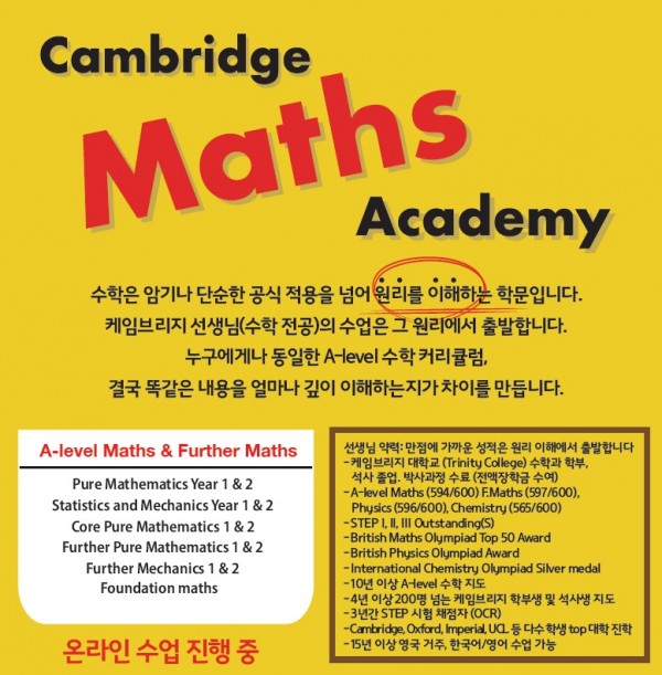 [A-level 수학 과외] Cambridge Maths Academy | 케임브리지 수학과 전공 선생님