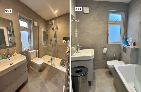 욕실은 2개 이며 두명당 욕실한개 쉐어하는 것이라 붐빌걱정없습니다.