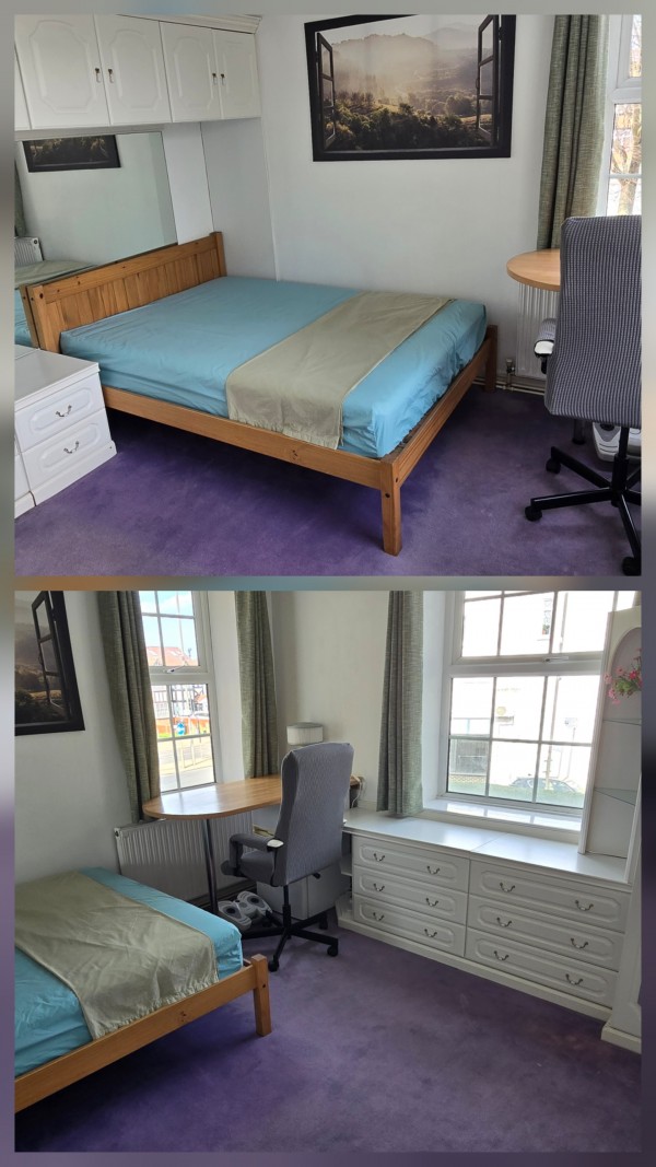 교통이 편리하고 대형 공원이 가까워 공기가 맑고 안전한 지역인 Morden 에서, 관리 상태가 매우 좋은 3 베드룸 플랫의 넓고 쾌적한 킹사이즈 더블룸을 렌트합니다.