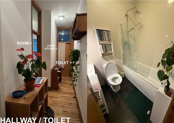(복도에 위치한 욕조 딸린 화장실을 단독으로 사용하시게 됩니다)