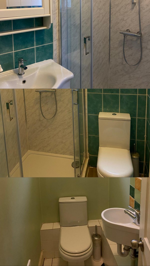 화장실과 샤워실이 분리되어있으며 샤워실이 두개있기때문에 각 화장실별로 총 3명씩 사용하시게되서 붐비지않게 사용하실수있습니다 또한 여러명이 같이 사용하는 플랫의 경우 공용시설이 더러워지고 관리하기 어려운데 클리너가 빌에 포함되어있어 공용시설을 청소해주기때문에 깔끔한 집을 선호하신다면 추천합니다.