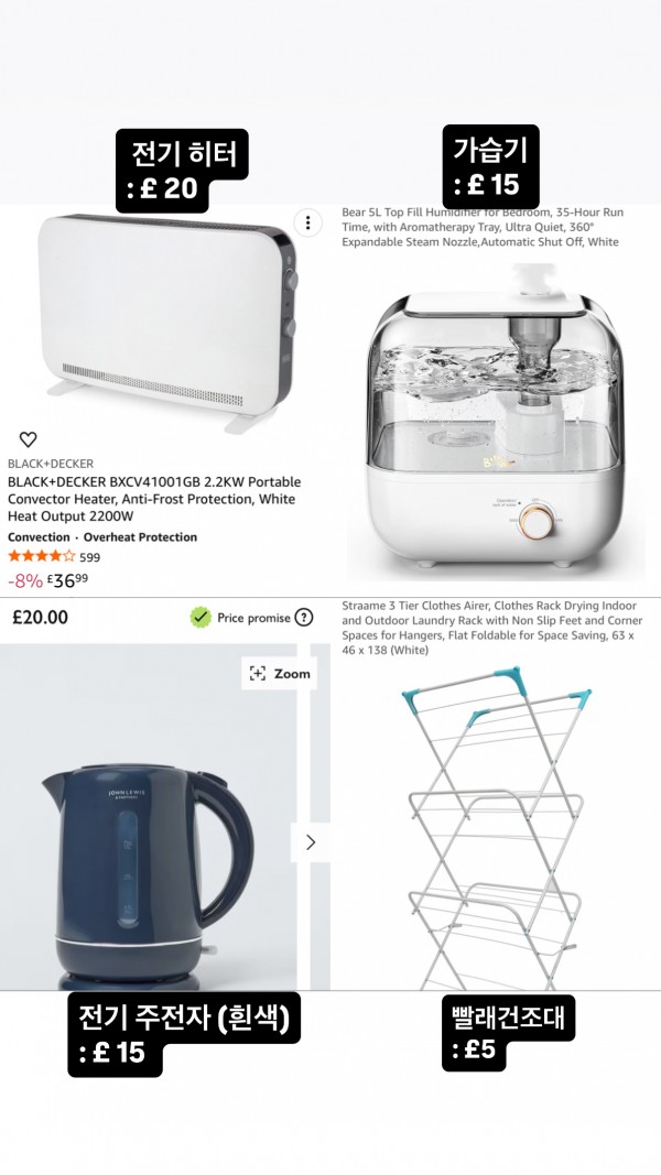 [런던] (귀국 정리) 전기 히터 / 가습기 / 전기장판 / 전기 주전자 / 빨래 건조대 / 침구류