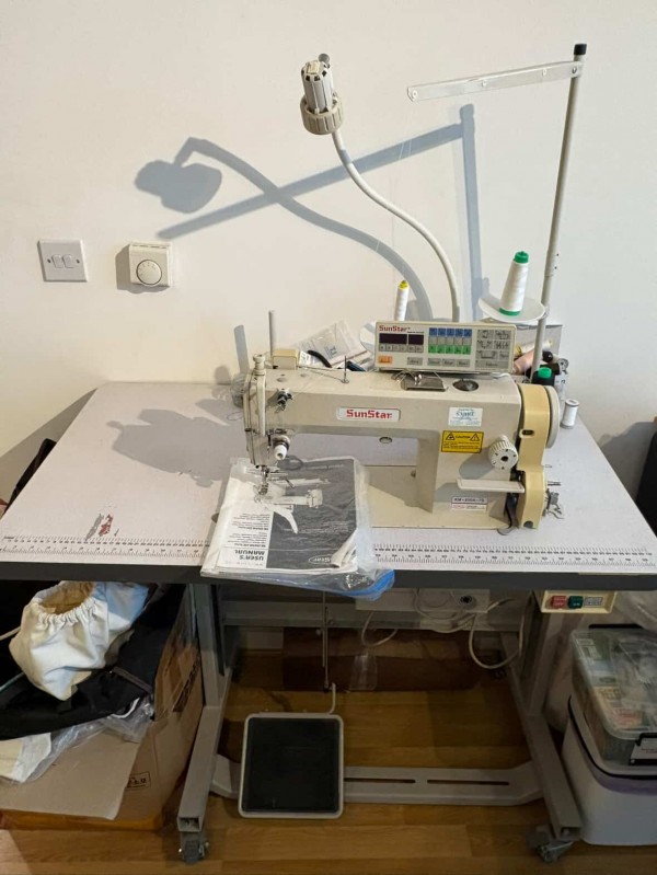 특징: 소음모터 장착 + 자동사절 가능한 모델 / Sunstar 미싱기라 두꺼운 원단도 잘 박혀요