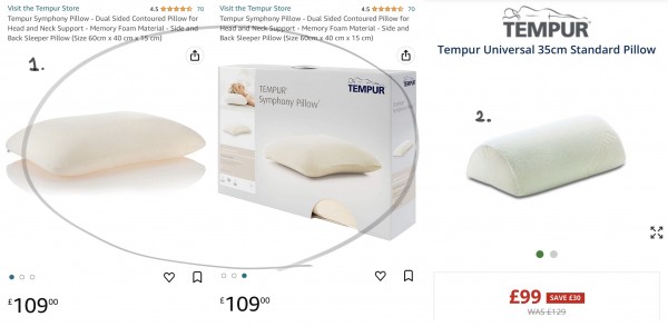1. Tempur Symphony Pillow - 정가 약 110파운드 > 50파운드