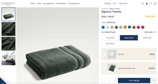 8. Christy 수건(675gsm) 차콜색 x6 => £6