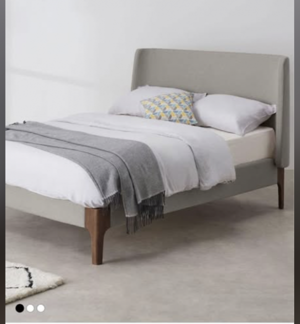 상태 너무 좋고 다리는 dark wood입니다. 페이스북 포스팅에 회색 베드 사진에 나온 다리 컬러고 패브릭은 마지막사진에 teal 컬러입니다.