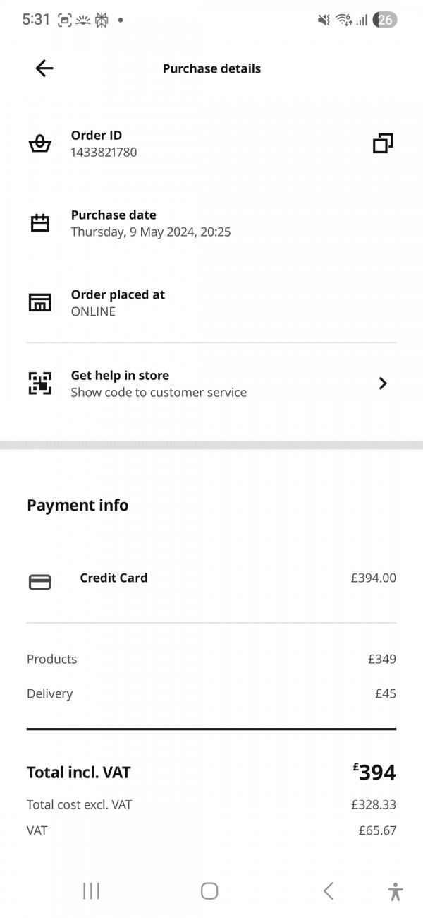 직접 가져가실 수 있고, 남성분이 오신다면 가까운 거리는 옮기는 데 도와드릴 수 있어요.구매가는 배송료 포함 £394, 판매가는 £50 (윔블던) 입니다.