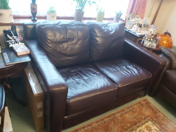 약 7~8년 사용한 2인용 가죽소파 (Dark Brown Colour) 그냥 드립니다.