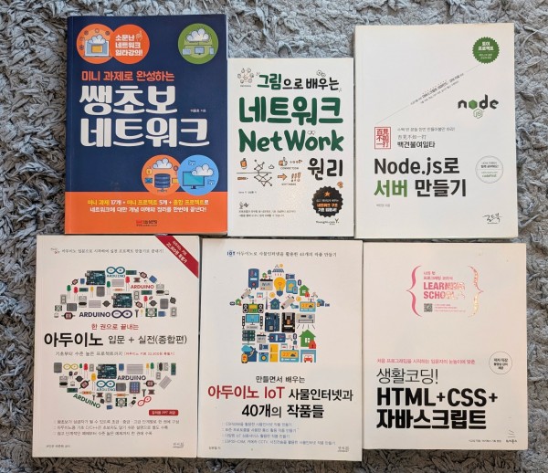 아듀이노, HTML + CSS+자바스크립트, Node.js, 컴퓨터 네트워크와 인터넷의 구조, 서버의 원리 등을 체계적으로 배우고 싶으신 분들에게 추천드립니다. 개별적인 구매 가능하며 총 8권으로, 각각 £10 씩 판매합니다. 상태는 모두 신상품입니다. 일괄 구매의 경우 전부 합쳐 £60에 판매합니다.