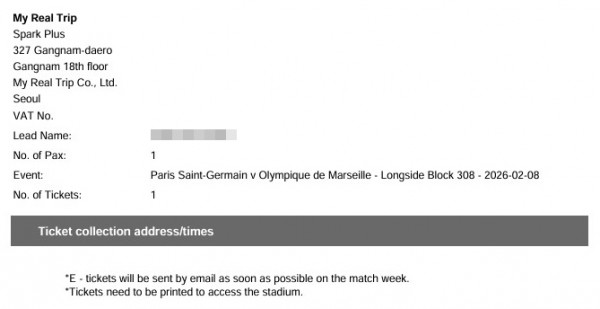 티켓은 e메일로 경기 전 전달드립니다.