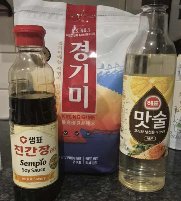 그동안 런던에서 요리하며 사용했던 진간장과 맛술, 쌀(2kg 중 1끼 식사 분량만 사용)이 남아서