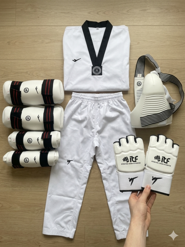 2. 최근 6개월동안 태권도 동아리하면서 사용했던 태권도 유니폼 상하의랑 정강이 보호대, forearm 보호대, groins 보호대, 글러브랑 발보호대 있어요. 일괄로 50파운드 입니다.