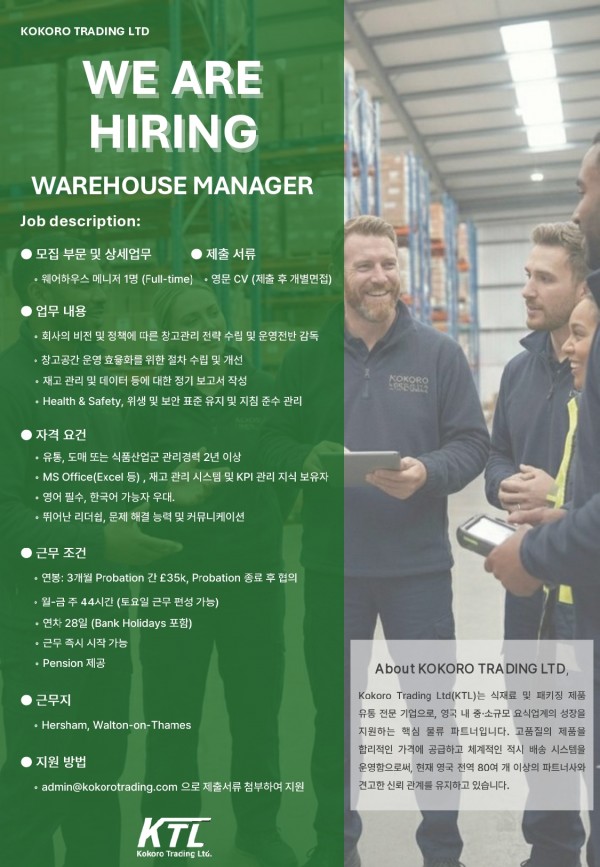 [KTL] KOKORO TRADING LTD / Warehouse Manager 채용공고