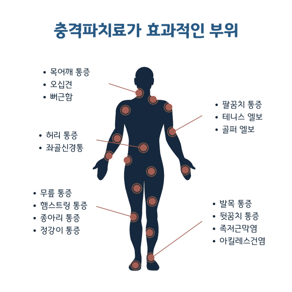 Shockwave Therapy (Radial/Focused) – 오십견(동결견)·족저근막염·아킬레스건염·테니스/골퍼엘보·석회성건염 등 만성 힘줄·석회성 질환에 효과적인 비수술 치료.