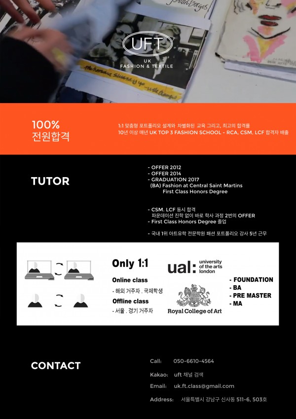 - 10년 이상 매년 UK TOP3 Fashion School: RCA, UAL: CSM, LCF 합격자 배출