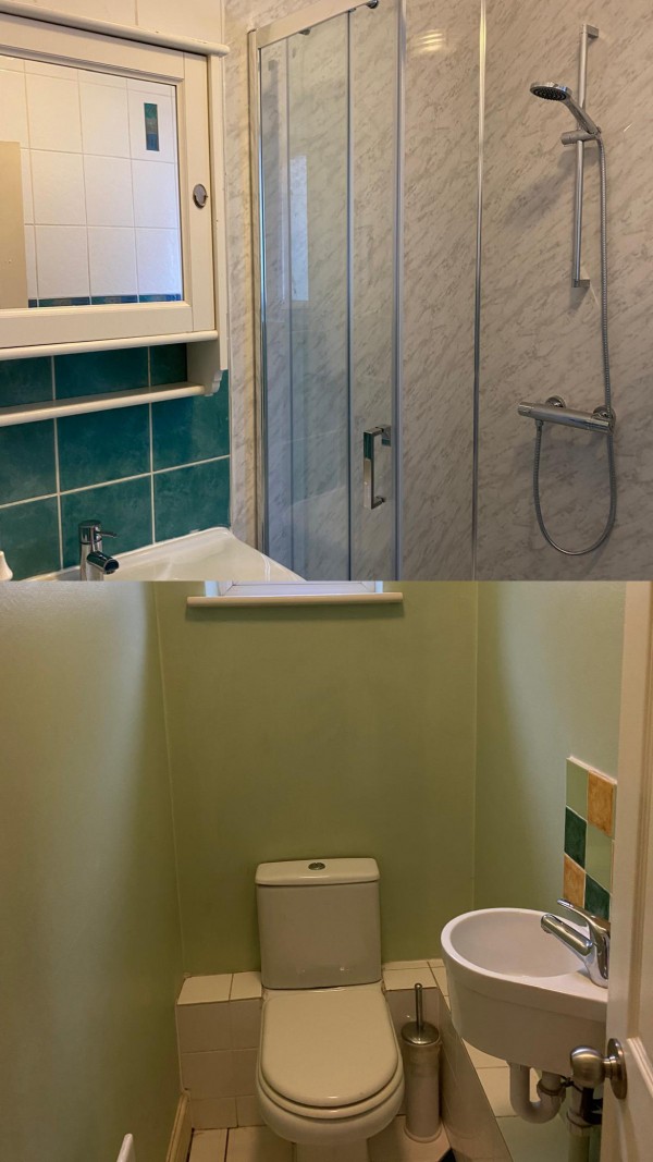 샤워실이 2개가 있어 각각의 화장실별로 세입자3명이 나눠쓰는 구조이며 화장실이 따로 분리되어있어 붐비지않게 사용하실수있습니다. 또한 여러명이 같이 사용하는 플랫의 경우 공용시설이 더러워지고 관리하기 어려운데 클리너가 빌에 포함되어있어 공용시설을 청소해주기때문에 깔끔한 집을 선호하신다면 추천합니다.